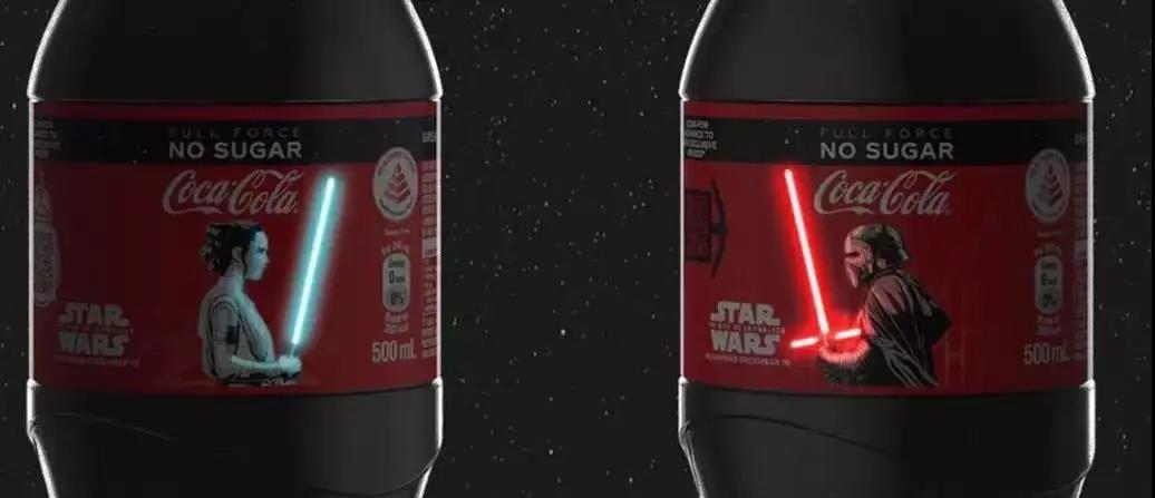 他們將電影《星球大戰(zhàn)》中光劍以O(shè)LED屏幕的方式設(shè)計(jì)在了可口可樂瓶身上。粉絲只要觸摸包裝光劍圖案,光劍就會(huì)發(fā)光,由電池發(fā)光的瓶身可以被點(diǎn)亮500次。